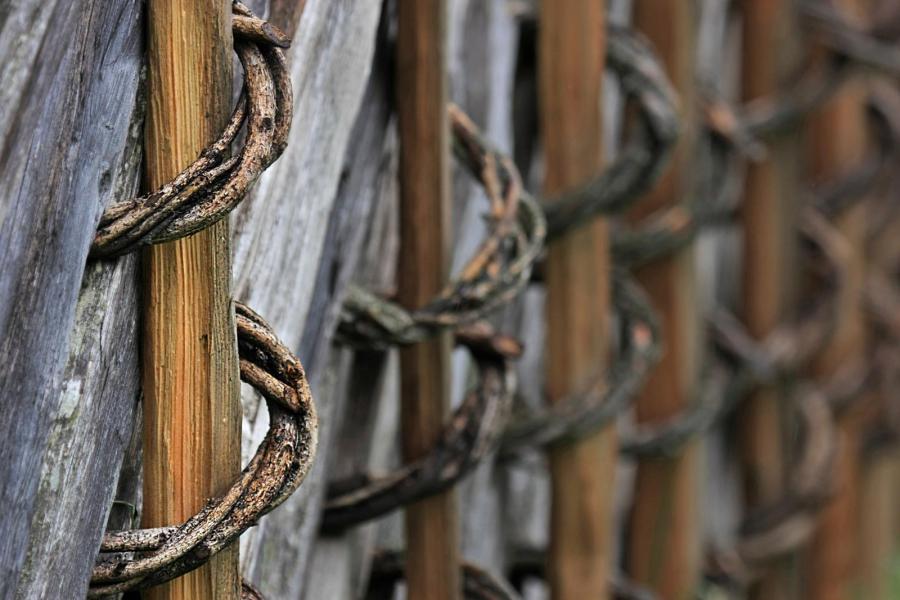 Zaunringe aus Fichtenästen über Feuer gebäht
